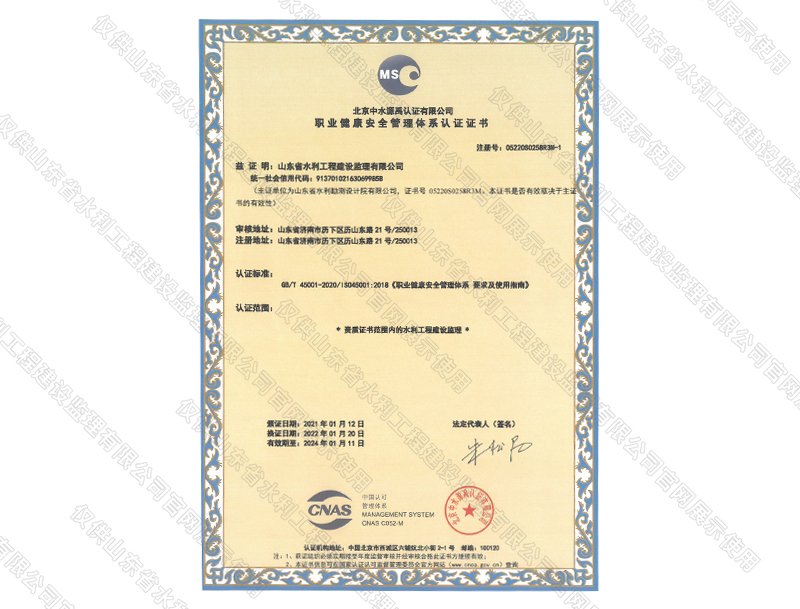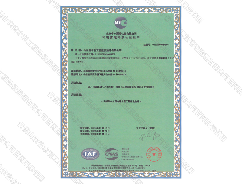 管理體系認證證書
